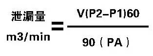 工厂整个系统的泄漏可通过在不供气情况下测定系统压力(在储气筒体上侧)从0.69 MPa(G)降到0.62 MPa(G)所需要的时间来诊断。利用泵气试验我们就可以算出整个系统的泄漏量: